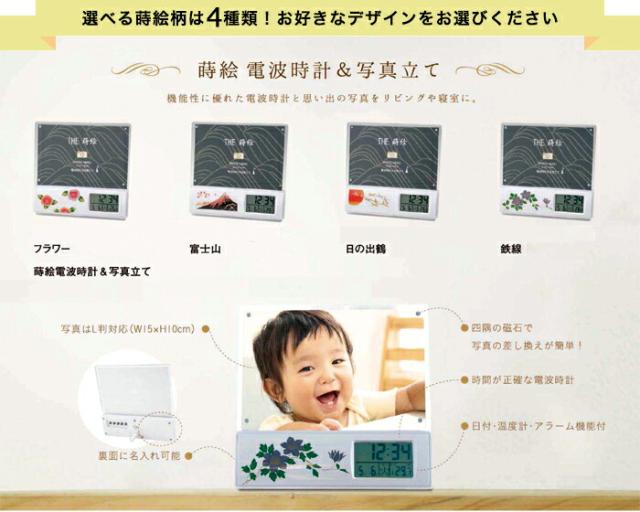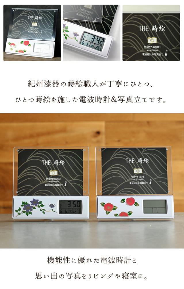 紀州漆器の蒔絵職人が丁寧にひとつ、ひとつ蒔絵を施した電波時計&写真立てです。