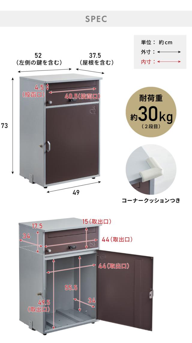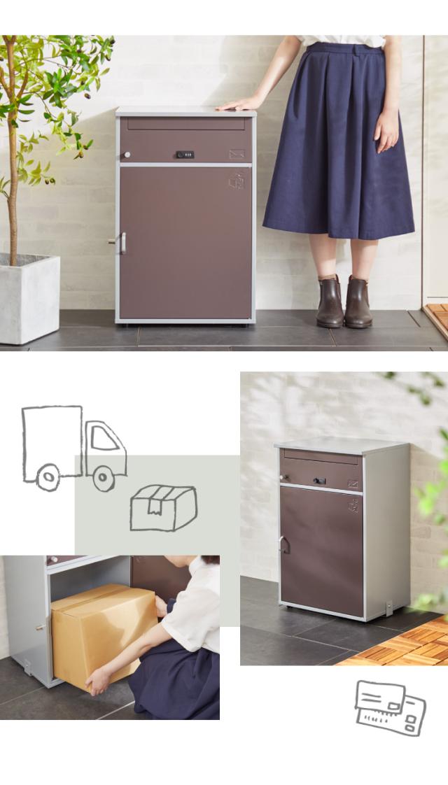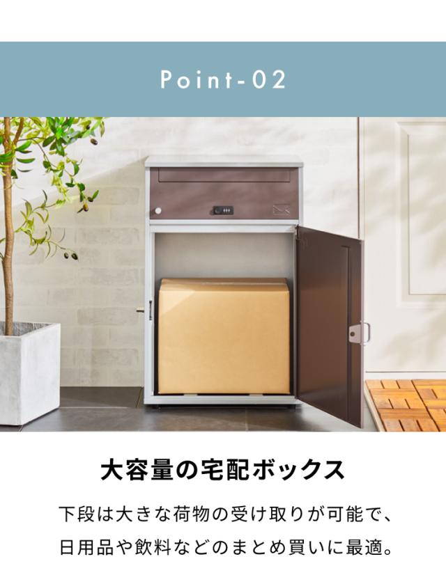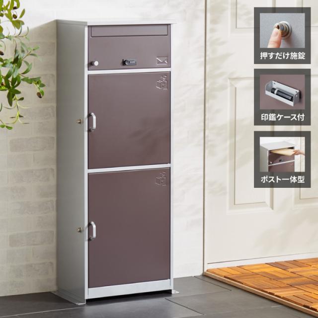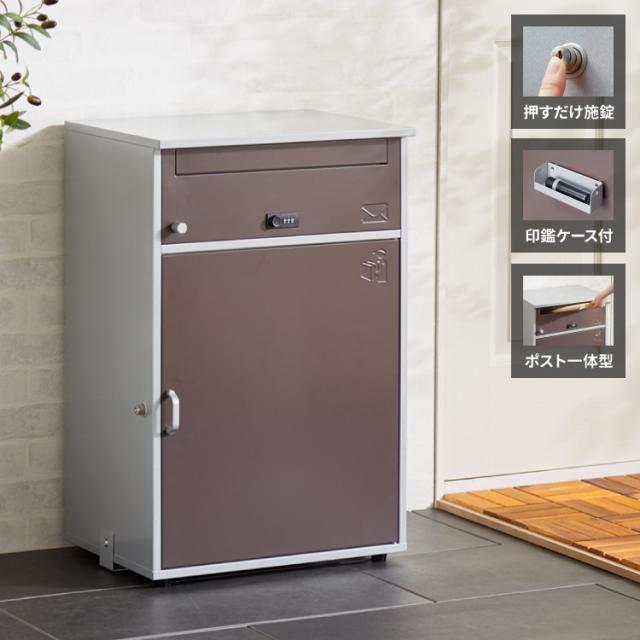 郵便ポスト付き 宅配ボックス ワイド 2段 ブラウン 一体型 置き配用 宅配便・メール便対応 1戸建て用 完成品 工事不要 宅配BOX 大容量 ポスト 前入れ前出し 屋外(代引不可)【送料無料】
