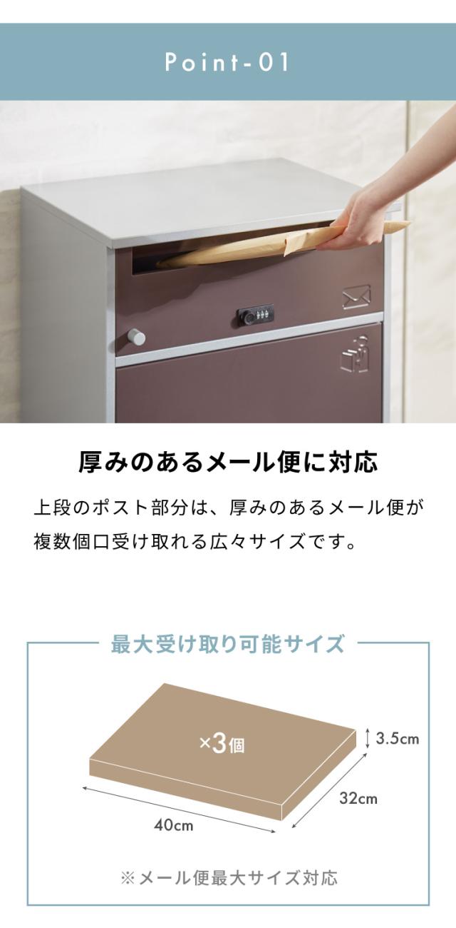 宅配ボックス、宅配BOX、郵便ポスト、スタンドポスト、一体型、メール便、宅配便、A4、鍵付き、ポスト、置き型、置き配、再配達、防止、屋外、大容量、リシム、リシムワイド、THB-276、KGY、ケイ・ジー・ワイ工業