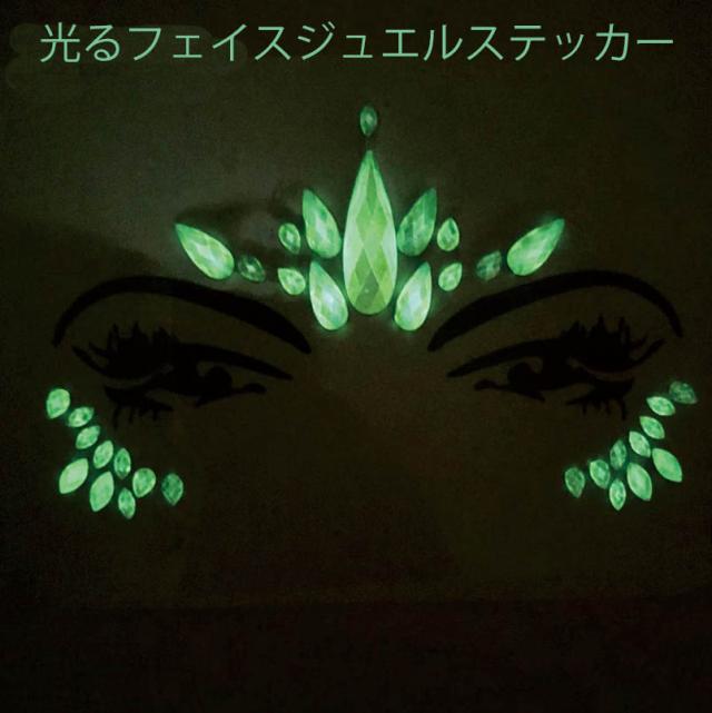 光を貯めて蓄光するグロータイプのジェムステッカー。夜のフェスやカーニバル、クラブや祭りで大活躍するジェムシール。