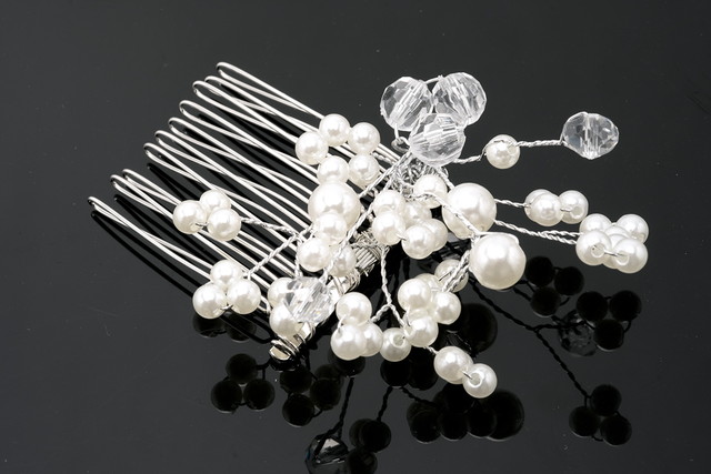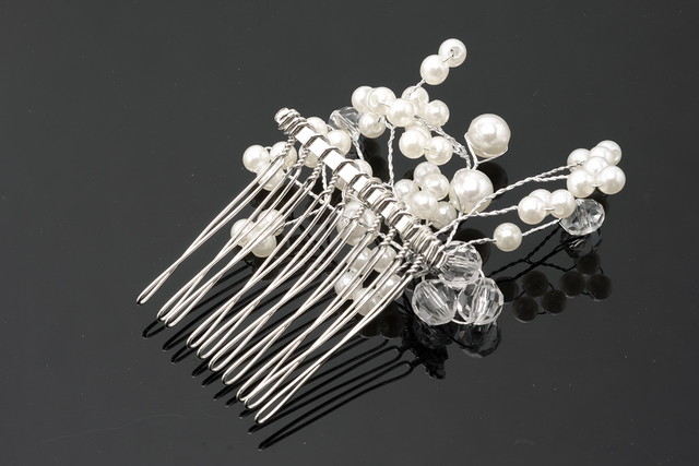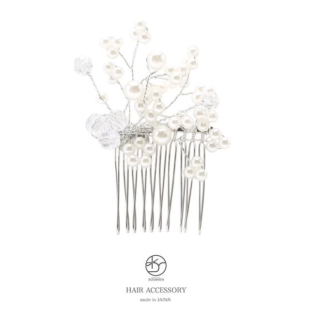 髪飾り 和装 結婚式 礼装 成人式 浴衣 シルバー 白 フェイクパール クリアビーズ 小ぶり コーム フォーマル 和洋兼用 ヘアアクセサリー 日本製 メール便対応