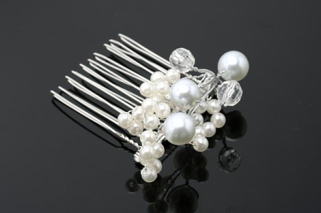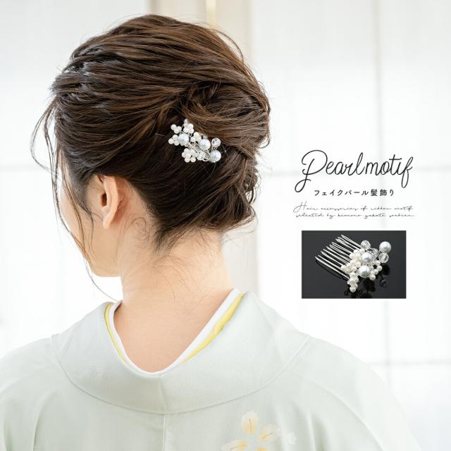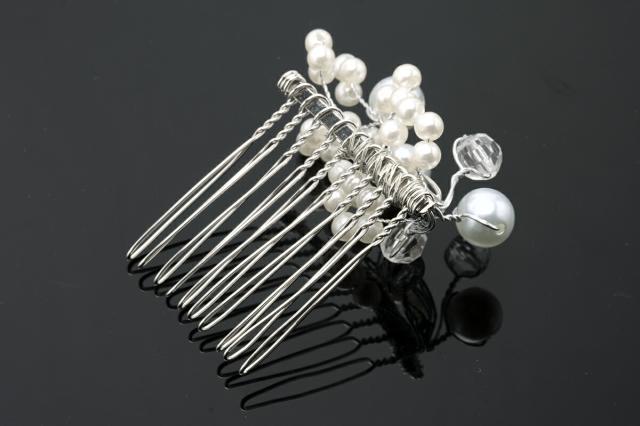 髪飾り 和装 結婚式 礼装 成人式 浴衣 白 シルバー フェイクパール クリアビーズ 小さい コーム フォーマル 和洋兼用 ヘアアクセサリー 日本製 メール便対応