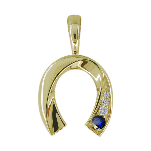 9月誕生石サファイアを使用した10金製の、馬蹄(ホースシュー)モチーフメンズペンダントヘッドです。