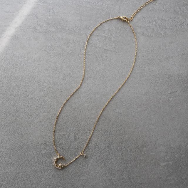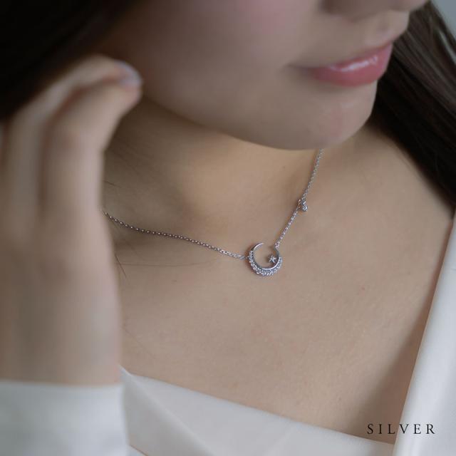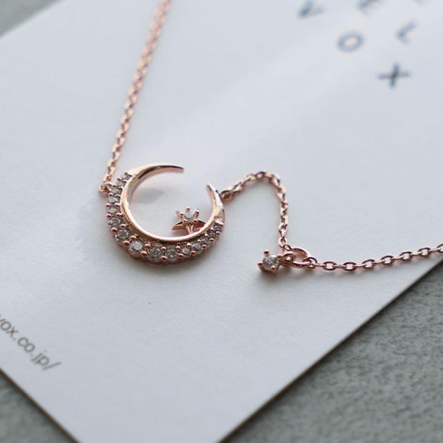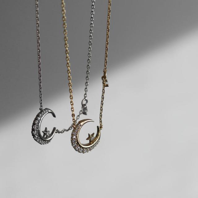 美しい輝きを放つキュービックジルコニアをあしらった三日月チャームが可愛いネックレスです。