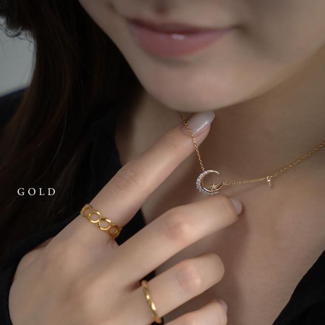 - 三日月の形が良くて、その上に星がのっているのが可愛いかったです。別でイニシャルの指輪も買ったので同じ色のピンクゴールドを選びました。