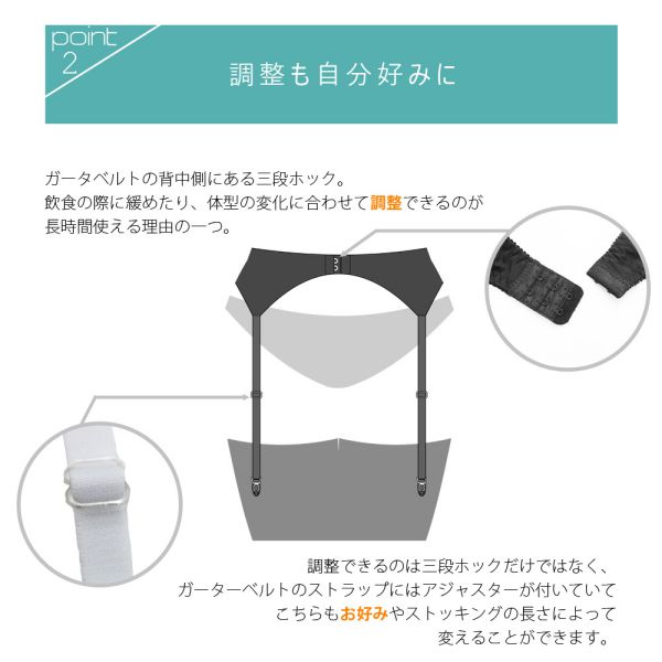 - 後ろがホックのタイプのガーターは初めて買いましたが、しっかり安定している感があってとても良かったです。 この値段でこの出来なら、もう一個欲しいと思いました。