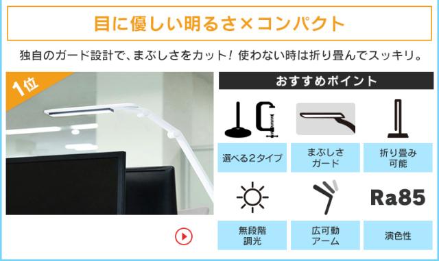 「まぶしさガード」採用で、手元は明るく、光源はまぶしくない、目にやさしいLEDデスクライトです。