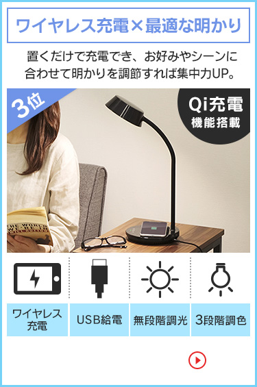明るさは無段階調節で調光ができ、デスク学習などに適切な明るさをご提供します。