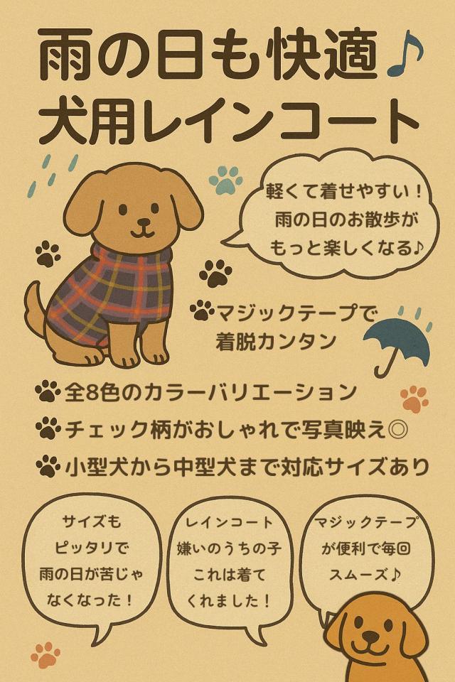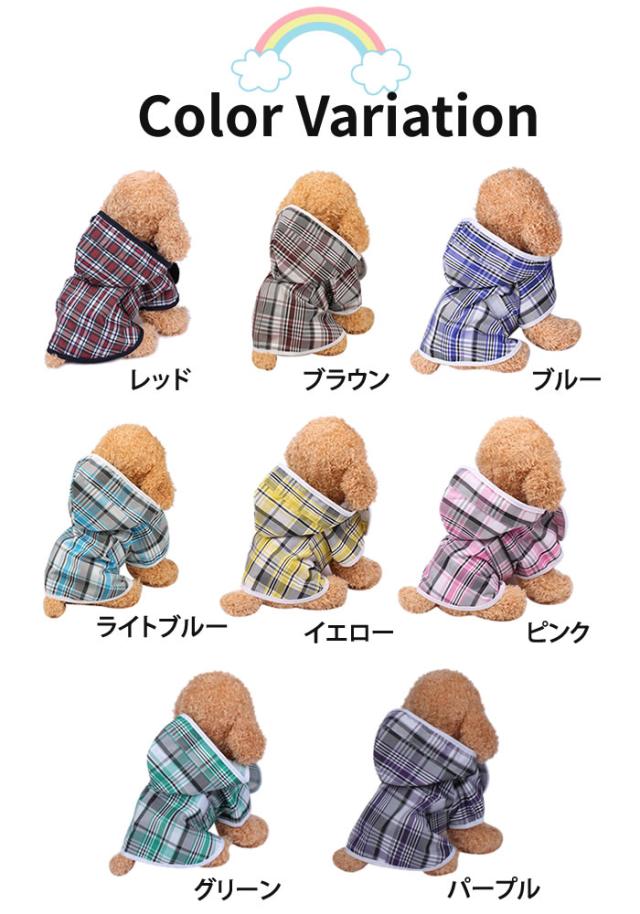 犬 レインコート 犬用レインコート ドッグウェア 雨具 犬服 小型犬 中型犬 いぬ チェック柄 着せやすい カッパ ポンチョ 合羽 防水 梅雨 着脱簡単 マジックテープ 可愛い かわいい ペット 軽量送料 サイズ豊富 リード穴 送料無料 yp rm