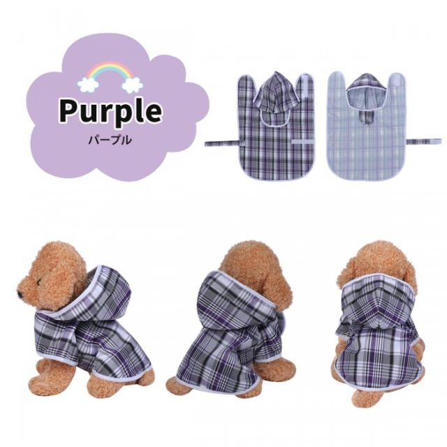 可愛いチェック柄犬のレインコートに新色グリーン、パープル追加