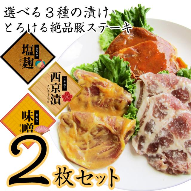 選べる 3種の味 トンテキ 2枚セット お試し 豚肩ロース ステーキ 肉 塩麹 西京漬け 味噌 オードブル パーティー 冷凍 *当日発送対象 お肉の しゃぶまる
