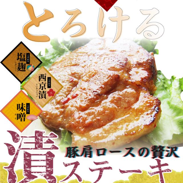 《クーポンで割引対象》選べる 3種の味 食べ比べ トンテキ 6枚セット 豚肩ロース ステーキ 肉 塩麹 西京漬け 味噌 肉 ギフト プレゼント 食べ物 食品 プレゼント 女性 男性 人気 お祝い のし オードブル パーティー 冷凍 お肉の しゃぶまる