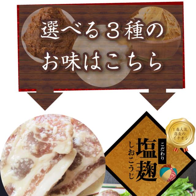 原材料:【塩麹】:豚肉(肩ロース)、砂糖(国内製造)、食塩、米こうじ、醸造酢、糖類混合品(ぶどう糖果糖液糖、水あめ、砂糖)、みりん、清酒/酒精、加工でん粉、(一部に小麦を含む)※たれ製造工場では乳成分、卵、落花生を含む製品を生産しています
