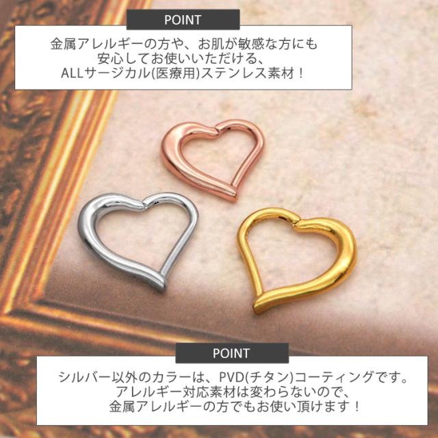 ボディピアス ワンタッチで装着 ハートフォルムネオセグメントリング 16G ボディーピアス 軟骨ピアス ヘリックス