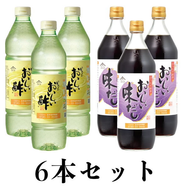 おいしい酢 955ml おいしい味だし 900ml×各3本 日本自然発酵 計6本 だしGセット 酢 だし 調味料 送料無料 冬とくキャンペーン