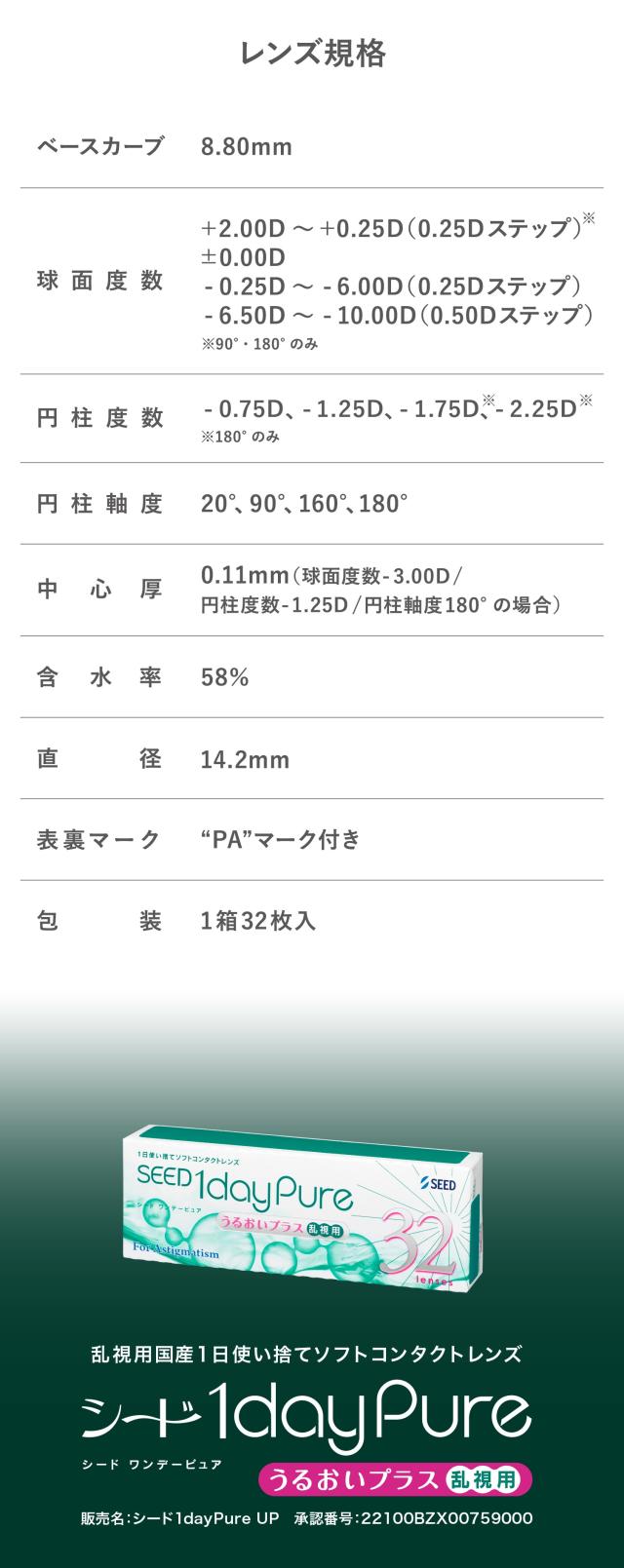 商品内容:シードワンデーピュアうるおいプラス乱視用【32枚入】×6箱