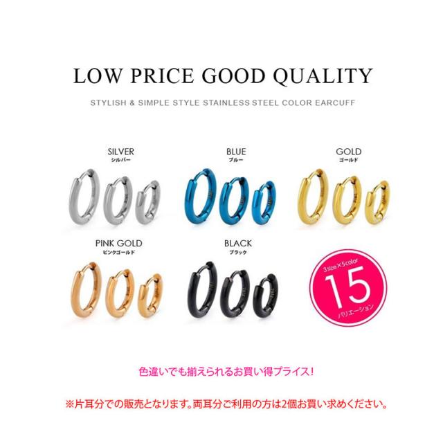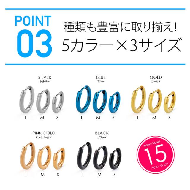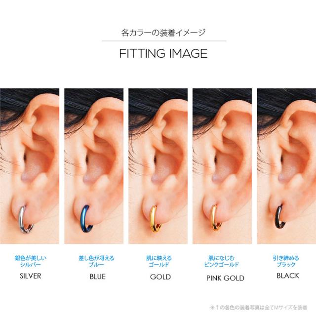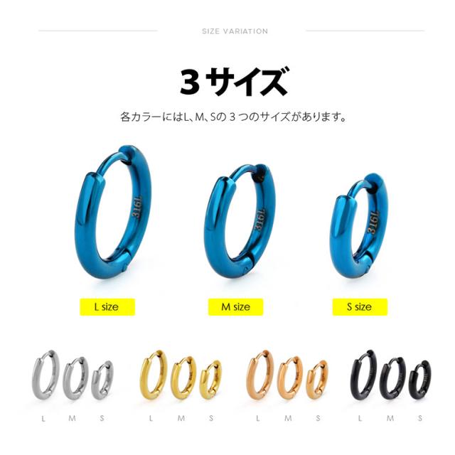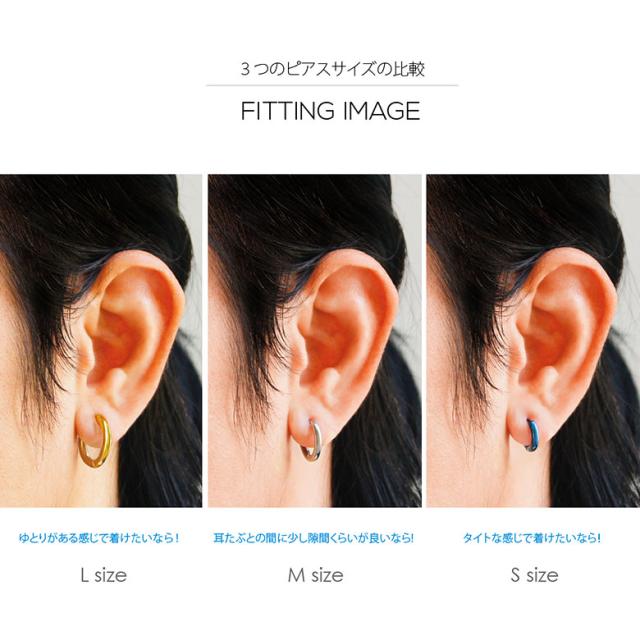 【サイズ】 Lサイズ:外径16.5mm 内径11.5mm 重さ1.4g ポスト0.8mm(約20G) / Mサイズ:外径15mm 内径10mm 重さ1.2g ポスト0.8mm(約20G) / Sサイズ:外径12.7mm 内径7.7mm 重さ1.0g ポスト0.8mm(約20G) 【片耳用売り】