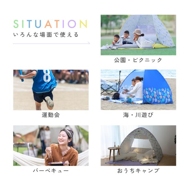 軽量でコンパクトなワンタッチテントだから、レジャーシート感覚で持ち運びできます。