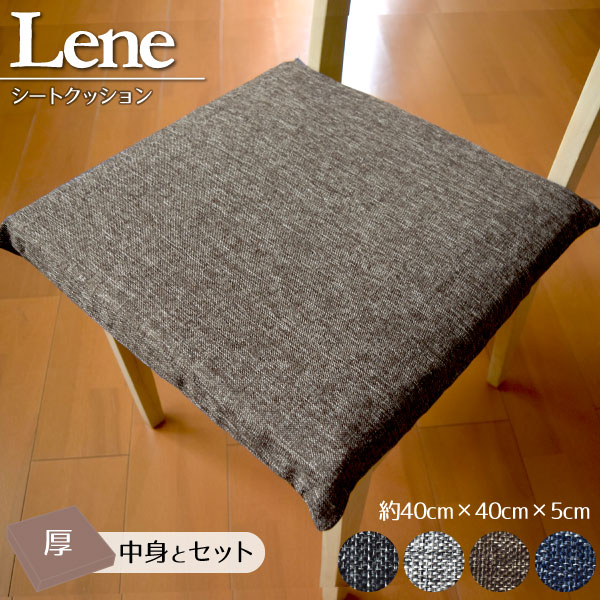 当店オリジナル デニム風 シートクッションカバー+ウレタン中身セット 厚さ5cm ソフト ウレタン リーネ 洗える 約40×40×5cm 麻混風