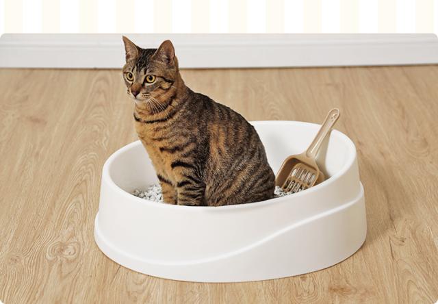 台形型で倒れにくい構造のオープンタイプの猫トイレです。