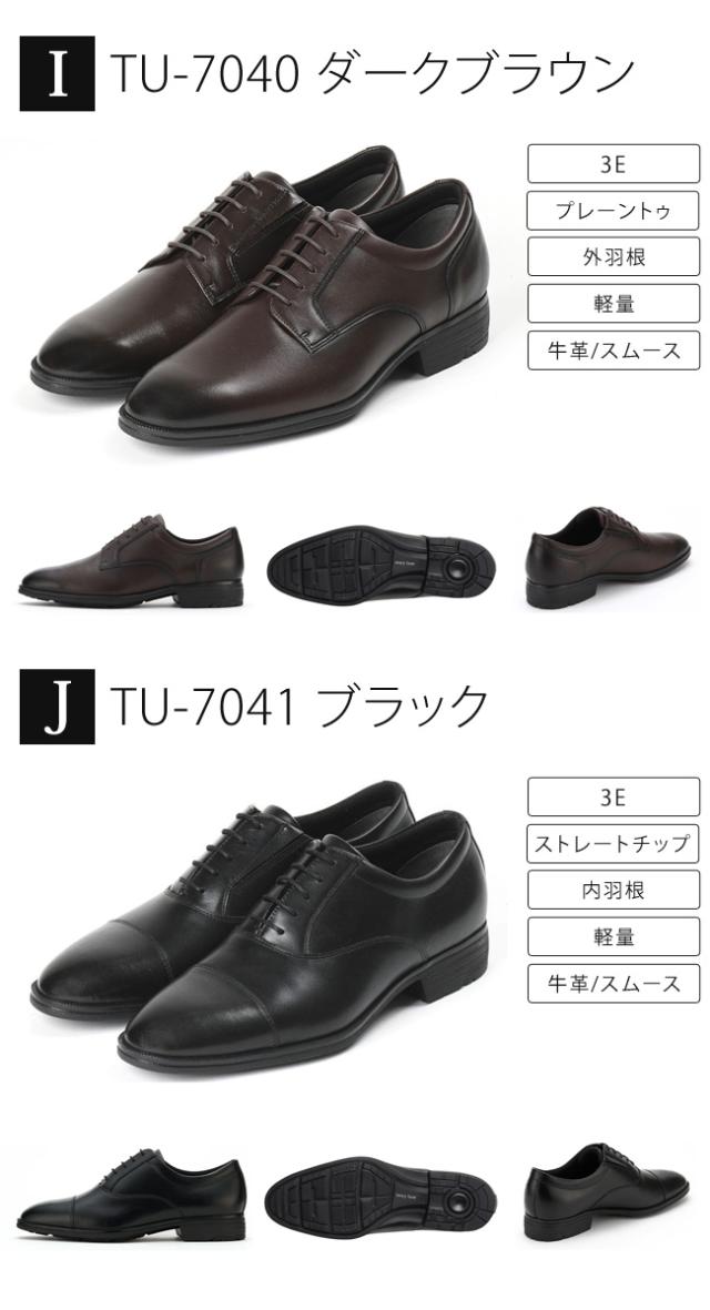 [J] 7041 ブラック 3E 内羽根 軽量 ストレートチップ