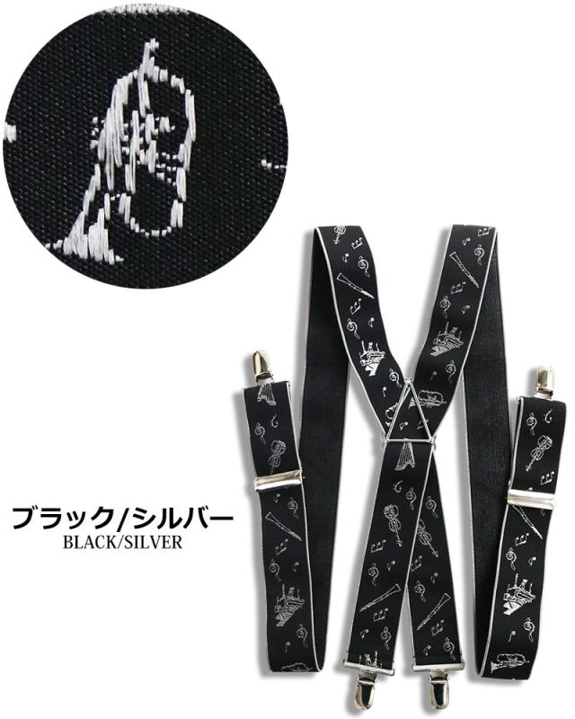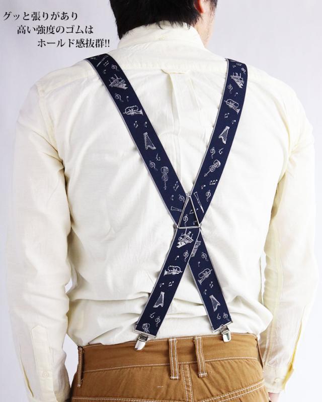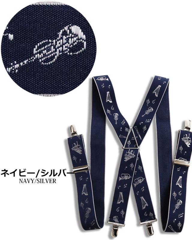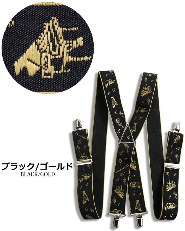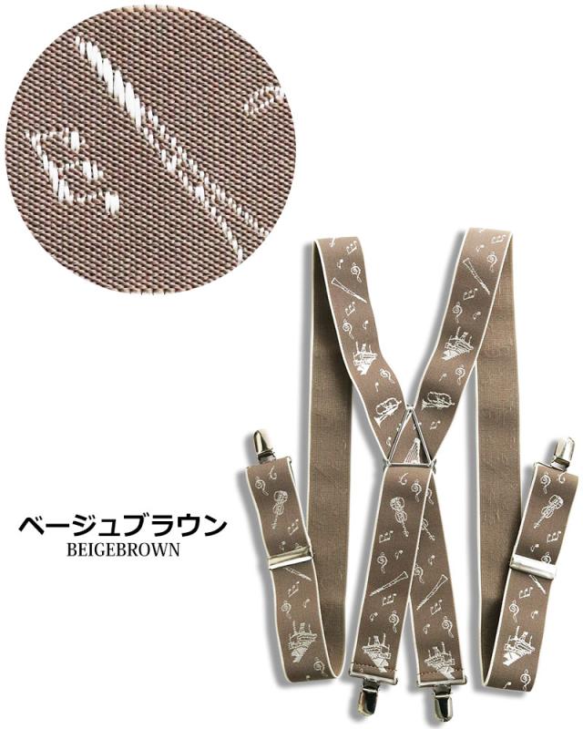 ゲバルトゴム 楽器柄 音楽シリーズ サスペンダー 日本製 X型 35mm メンズ フォーマル 音楽会 発表会 イベント 衣装 吊りバンド ズボン吊り