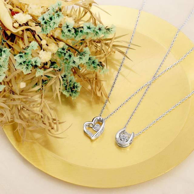 胸元で優しく揺れ、輝き続ける「ダンシングストーン」デザインと、キュービックジルコニアの最高位の輝きを採用した、かわいさとエレガントさどちらも兼ね備えたハートジュエリー。