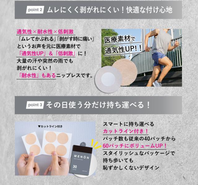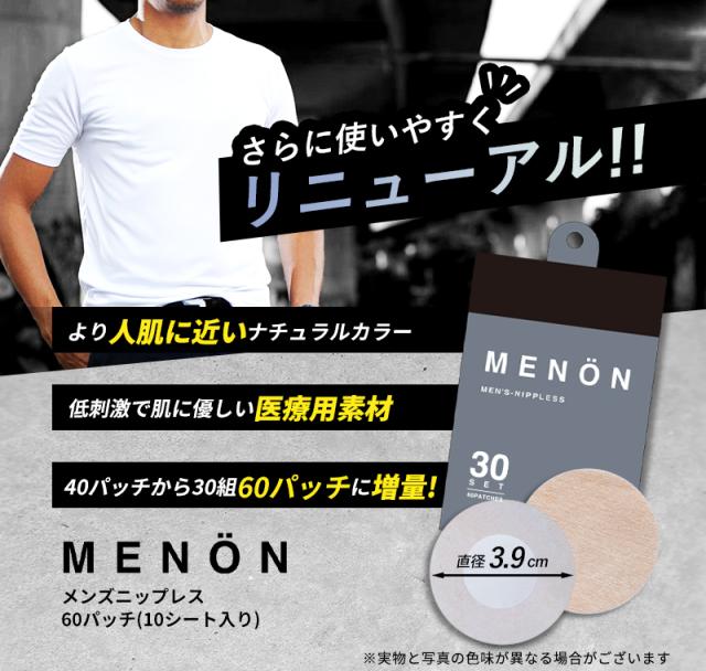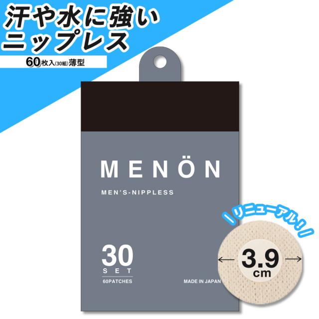 ニップレス メンズ シール 30セット (60枚) 送料無料 MENON 男性用 使い捨て ニップレスシール マラソン シャツ 透けない 擦れ対策 水や汗に強い 胸ポチ 解消 対策 メノン