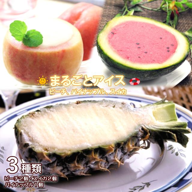 3種類セット(パイン1個、ピーチ2個、スイカ2個)化粧箱 まるごとアイスサマーセット フルーツアイス ギフト パイナップル 桃 西瓜 の果皮を使用した 果物まるごとアイス / 沖縄県・一部離島は配送不可