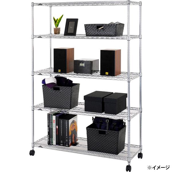 セット内容:スチールシェルフ(棚板)×5枚、スリーブ(棚板取付用部品)×21組、ポール×4本、ナイロンキャスター(ストッパー付)×2個、ナイロンキャスター(ストッパーなし)×2個、標準アジャスター×4個、スパナ×1個(キャスター取付用)