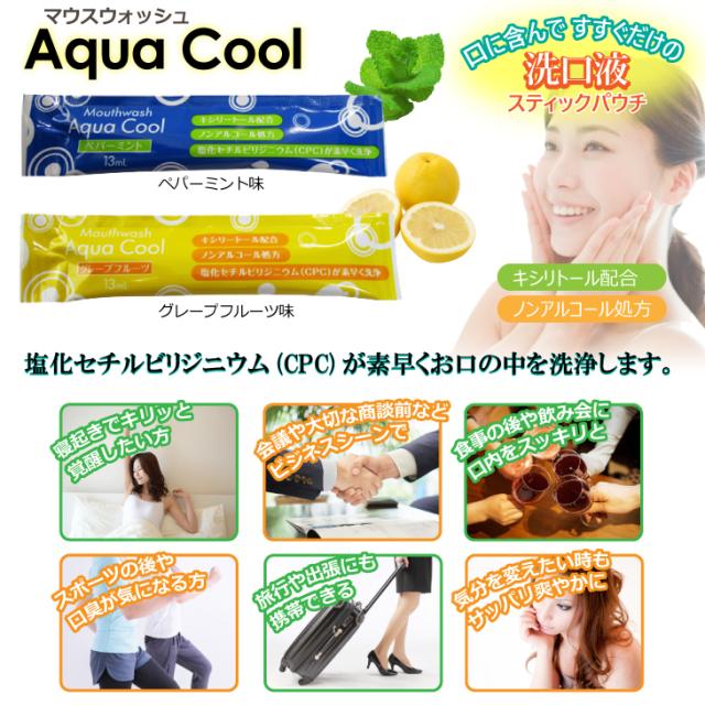 【ホテルアメニティ】【携帯用マウスウォッシュ】【個包装】【キシリトール配合】業務用 使い捨て マウスウォッシュ アクアクール(Aqua Cool)洗口液 13ml ×5個セット - ペパーミント・グレープフルーツの2種類の香り選択