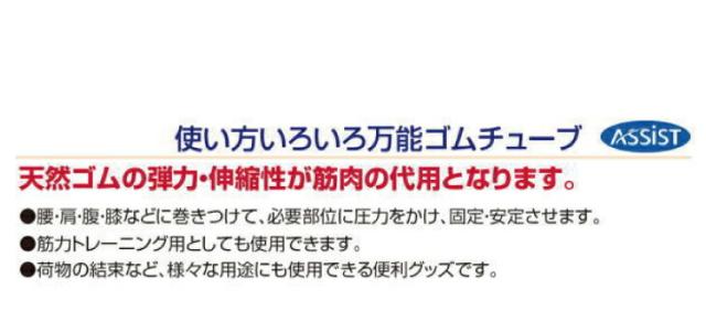 ダイエッター・アスリートに使用されている、トレーニングゴムバンドです。腕・足・腰・ウエストのダイエット、インナーマッスルトレーニングにも効果的です。● 天然ゴムの弾力・伸縮性が筋肉の代用となります。● 腰・肩・腹・膝などに巻きつけて、必要部位に圧力をかけ、固定・安定させます。● 筋力トレーニング用としても期待できます。● 荷物の結束など、様々な用途にも使用できる便利グッズです。