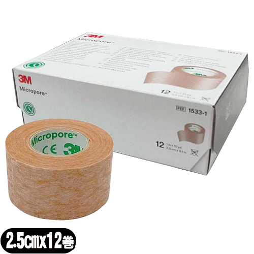 【あす着】3M マイクロポアーサージカルテープ スキントーン 1533-1(全長9.1m×幅2.5cm) 1箱(12巻入り) - 肌になじんで目立ちにくいテープ。傷あとの保護・まつエクの施術・美容ケア【送料無料】