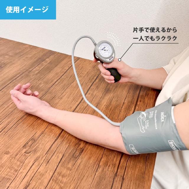 アネロイド式メータと送気球を一体化させることで、加圧、減圧、読み取りが片手でできるようになりました。