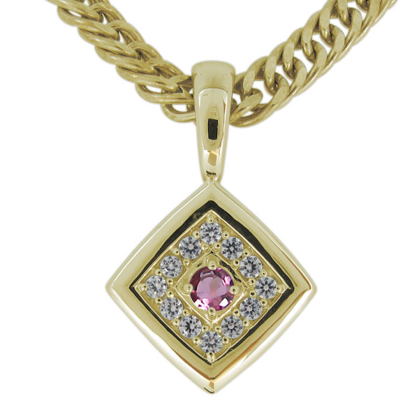 メンズ ネックレス ピンクトルマリン 10月誕生石 10金 ペンダント 喜平 シンプル