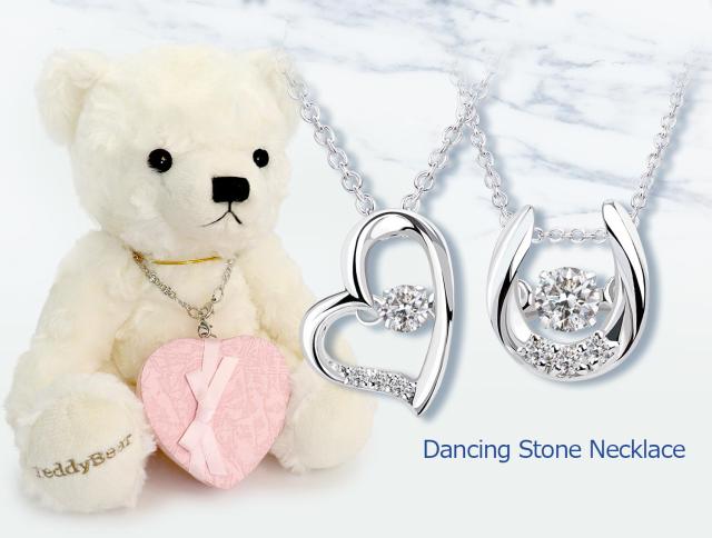 胸元で優しく揺れ、輝き続ける「ダンシングストーン」デザインと、キュービックジルコニアの最高位の輝きを採用した、かわいさとエレガントさどちらも兼ね備えたハートジュエリー。