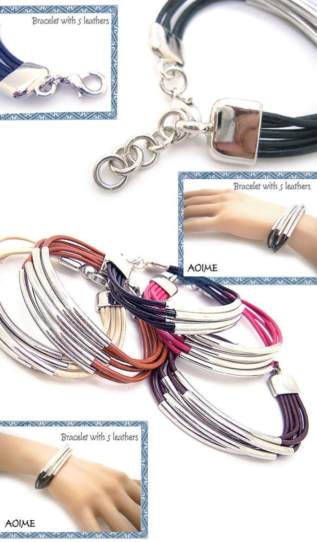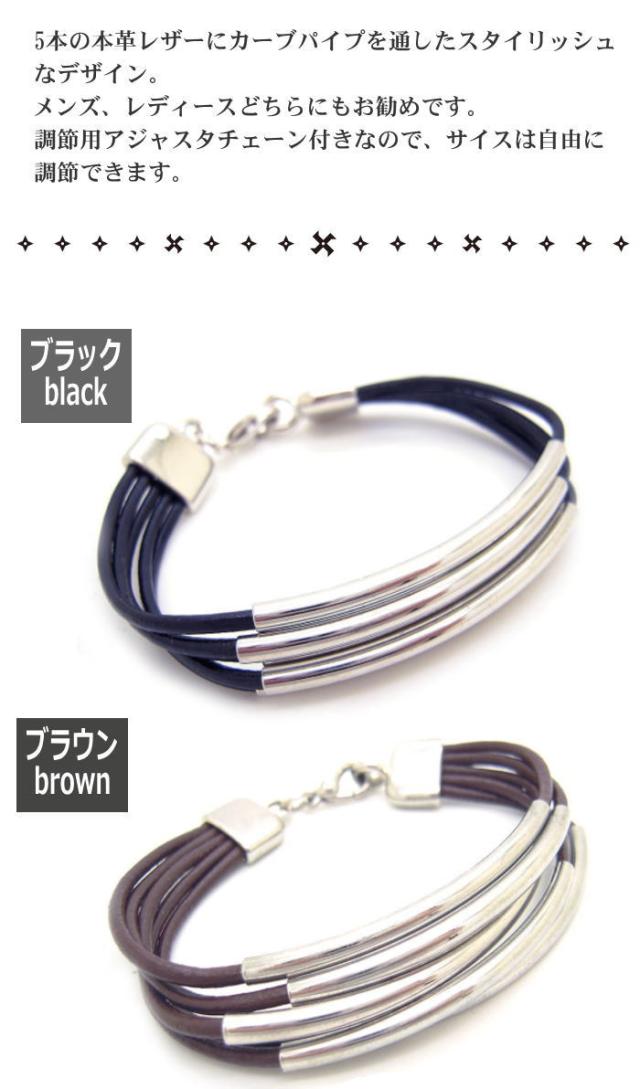 5本 レザーブレスレット 本革 カーブロングパイプ メンズ レディース ユニセックス フリーサイズ 3-5806