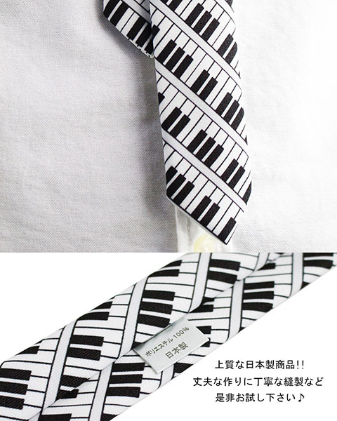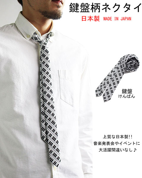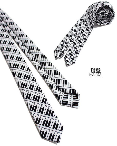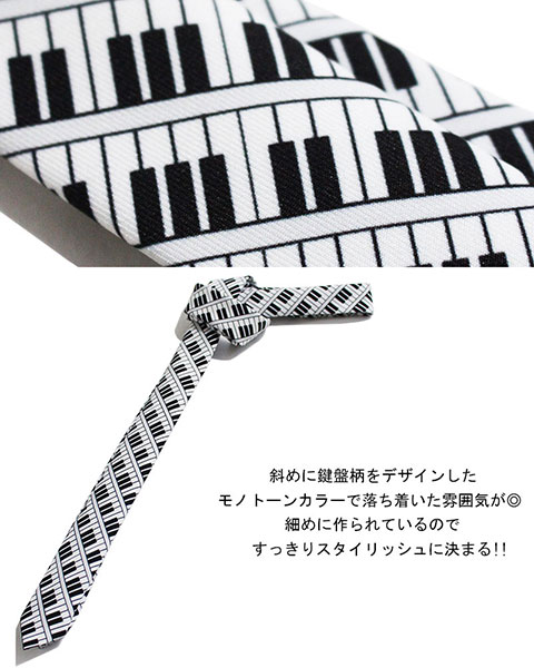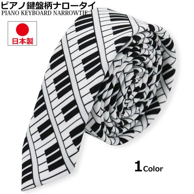 ピアノ柄 タイト ネクタイ ナロータイ 鍵盤 音楽 キーボード カジュアル 日本製