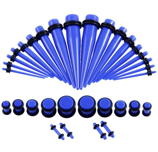 [青色 ボディピアス 2個セット] アクリル 拡張器 プラグ ブルー 14ゲージ 14G 12ゲージ 12G 10ゲージ 10G 8ゲージ 8G 6ゲージ 6G 4ゲージ 4G 2ゲージ 2G 0ゲージ 0G 00ゲージ 00G メンズ レディース インサーション テーパー ピン プラスチック ダークブルー 濃い青 ネイビー