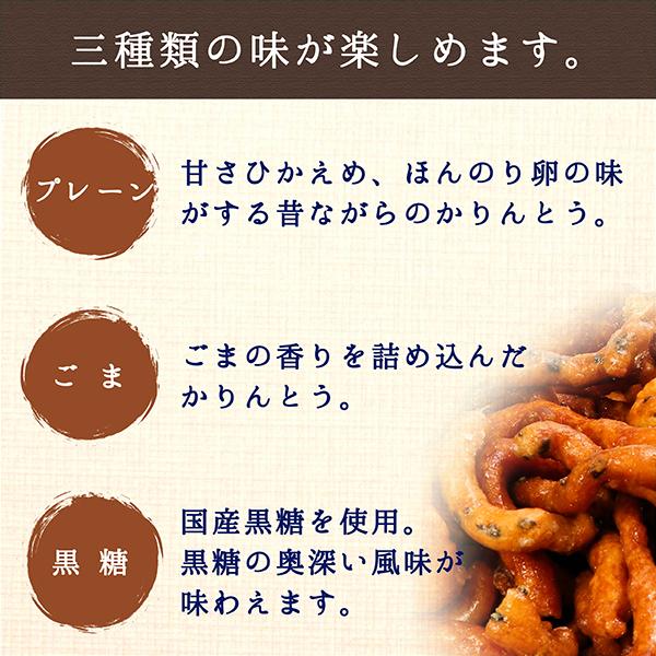 1袋で「プレーン」「ごま」「黒糖」の3つの味をお楽しみ頂けます。