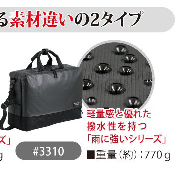 前面に2種類の生地を使用したコンビネーションデザイン。高撥水、軽量の多機能2wayビジネスバッグ。多数の収納ポケットで小物を整理でき、システマチックに使いこなせます。B4サイズ対応。背面にはトローリーバッグに取り付けられるセットアップ用ベルト付き。
