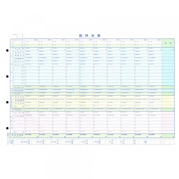 商品詳細:1冊で200名分が計算できるタテ型の給料計算用紙です。1枚は切り離して各人の給与明細に、1枚は記録台帳とします(タテ型ヨコ書き、10名連記、手当欄11、控除欄4)。 生産国:日本 仕様:ノーカーボン・2複写(カラー4色刷)B4規格外20組(10名連記)