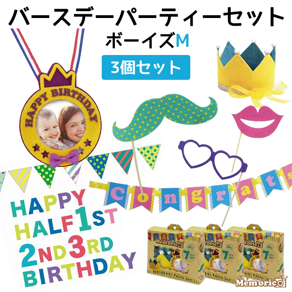 メモリコ バースデーパーティーセット ボーイズM 3個セット 男の子用 誕生日 記念写真 写真撮影 誕生日会 デコレーションキット