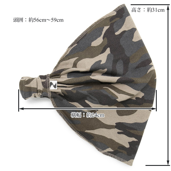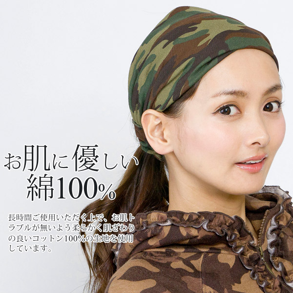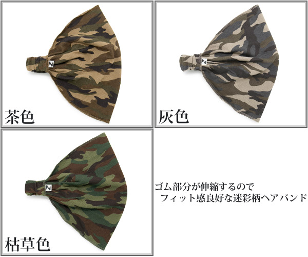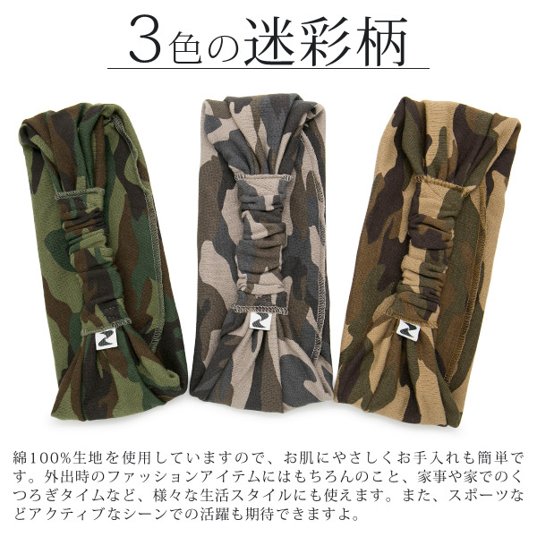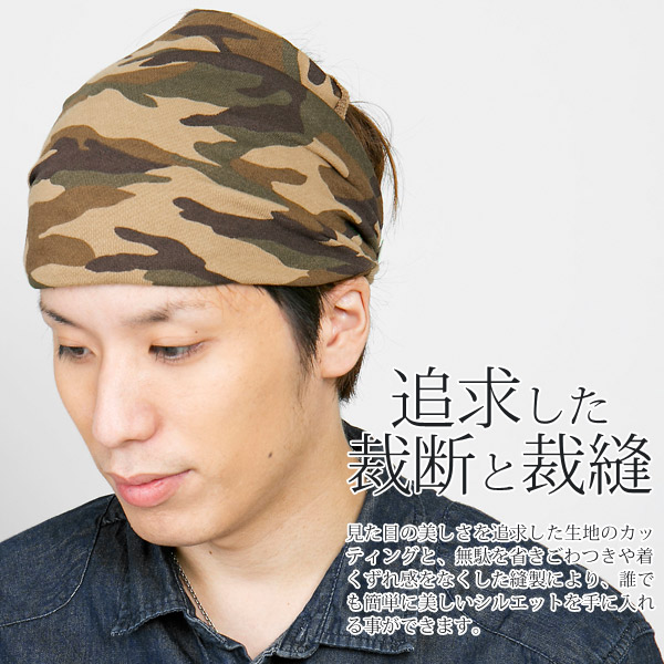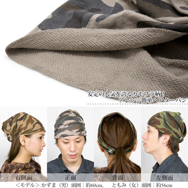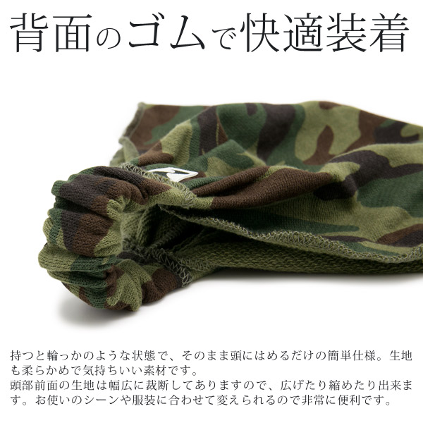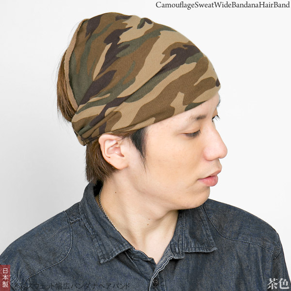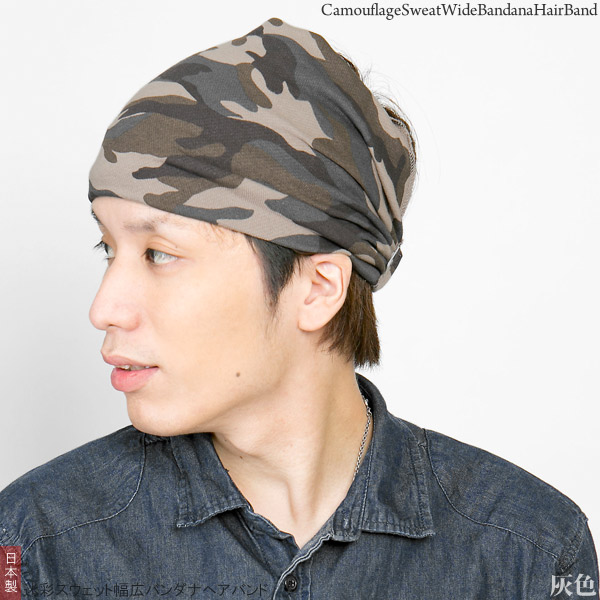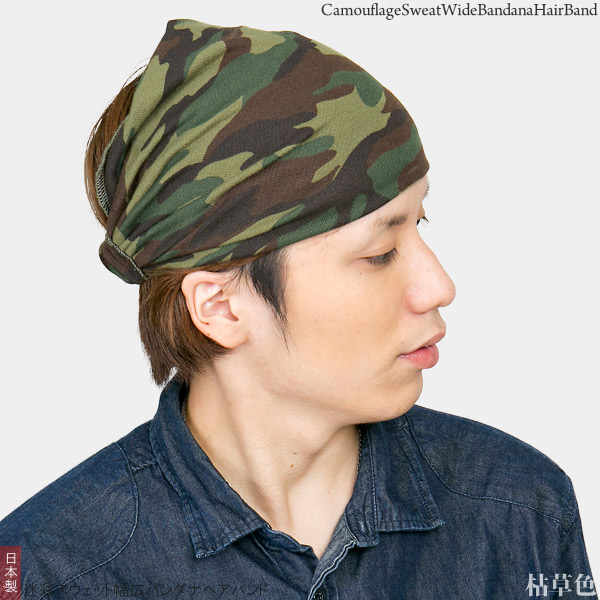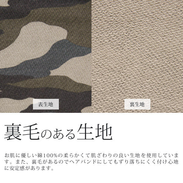 バンダナ ヘアバンド [メール便可] ターバン メンズ レディース カモフラ / 迷彩スウェット幅広バンダナヘアバンド 日本製