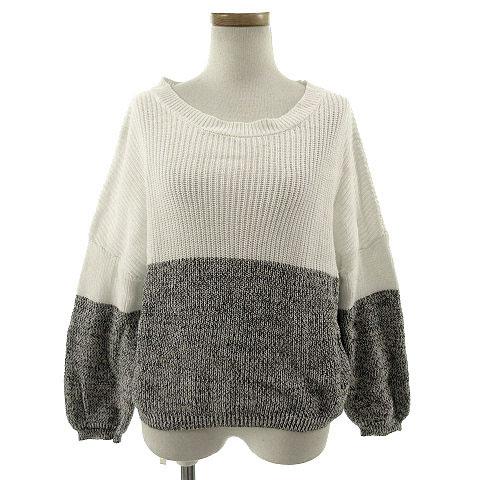 【中古】ケービーエフプラス KBF+ アーバンリサーチ セーター 長袖 切替 コットン ホワイト 白 グレー ONE レディース