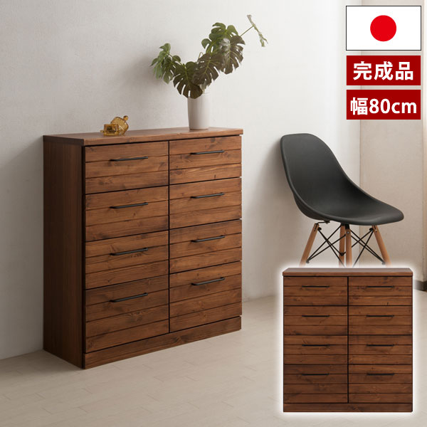 チェスト 引出し 棚 幅80cm 天然木スリムチェスト ブラウン ヴィンテージ アメリカン 西海岸インテリア 収納棚 Kaiser TC29-020-NS