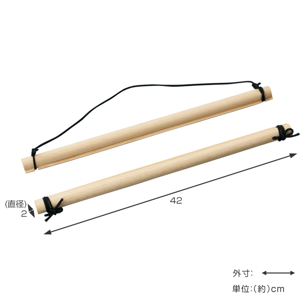 1)本体の両端に付いている紐を外し、押さえ棒を取ります。