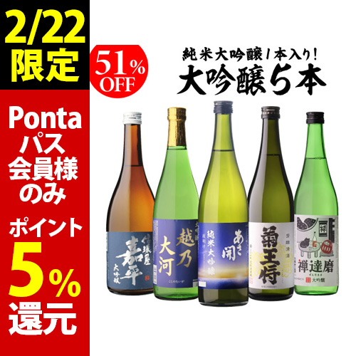 2/22限定 Pontaパス会員様のみ ポイント5%還元 大吟醸 日本酒 飲み比べ セット720ml 5本 お中元 御中元 御歳暮 お歳暮 長S