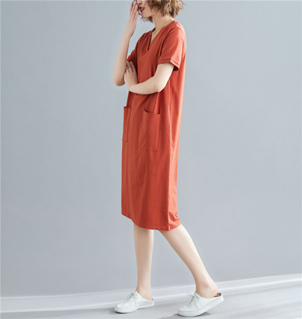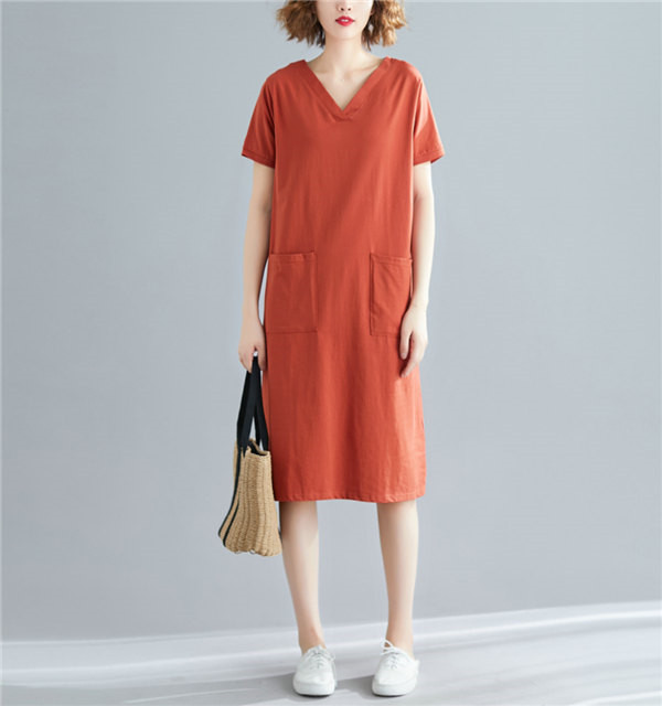 送料無料 Tシャツワンピース 春 夏 Tシャツ ワンピース Vネック レディース カットソー 半袖 ミモレワンピース 膝丈 ひざ丈 チュニックワンピース ルームウェア