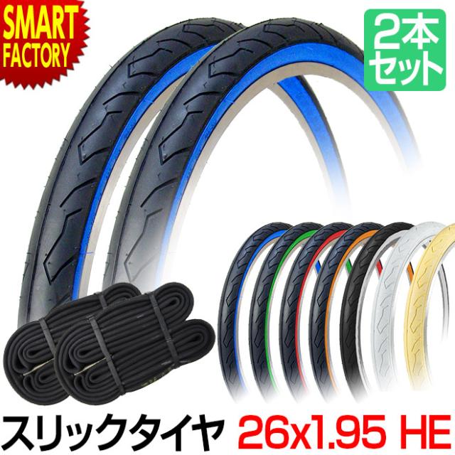 自転車 タイヤ 26インチ 26x1.95 HE タイヤ チューブ 各2本 セット カラータイヤ スリックタイヤ SR064 シンコー SHINKO マウンテンバイク ストリート 街乗り 通勤 通学